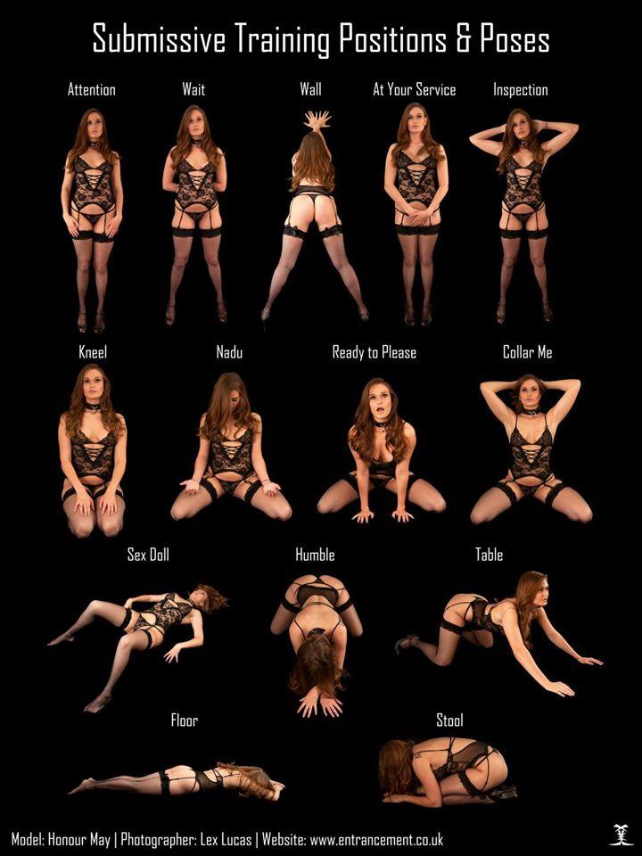 Möglicher Zweck der Pose: Respekt gegenüber der Herrschaft zeigen, wenn die Sub einen Raum betritt.